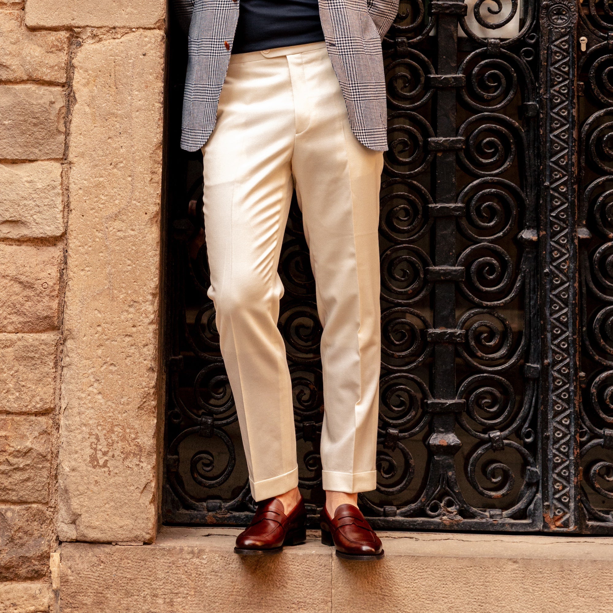 Í verslun okkar í Bolholti 4 bjóðum við upp á fjölbreytt úrval af stökum buxum. Ítalskar gallabuxur úr bómull frá Candiani, chino buxur úr teygjanlegri bómull frá Olimpias og flannelbuxur úr ull frá Vitale Barberis Canonico eru meðal þess sem við bjóðum upp á.