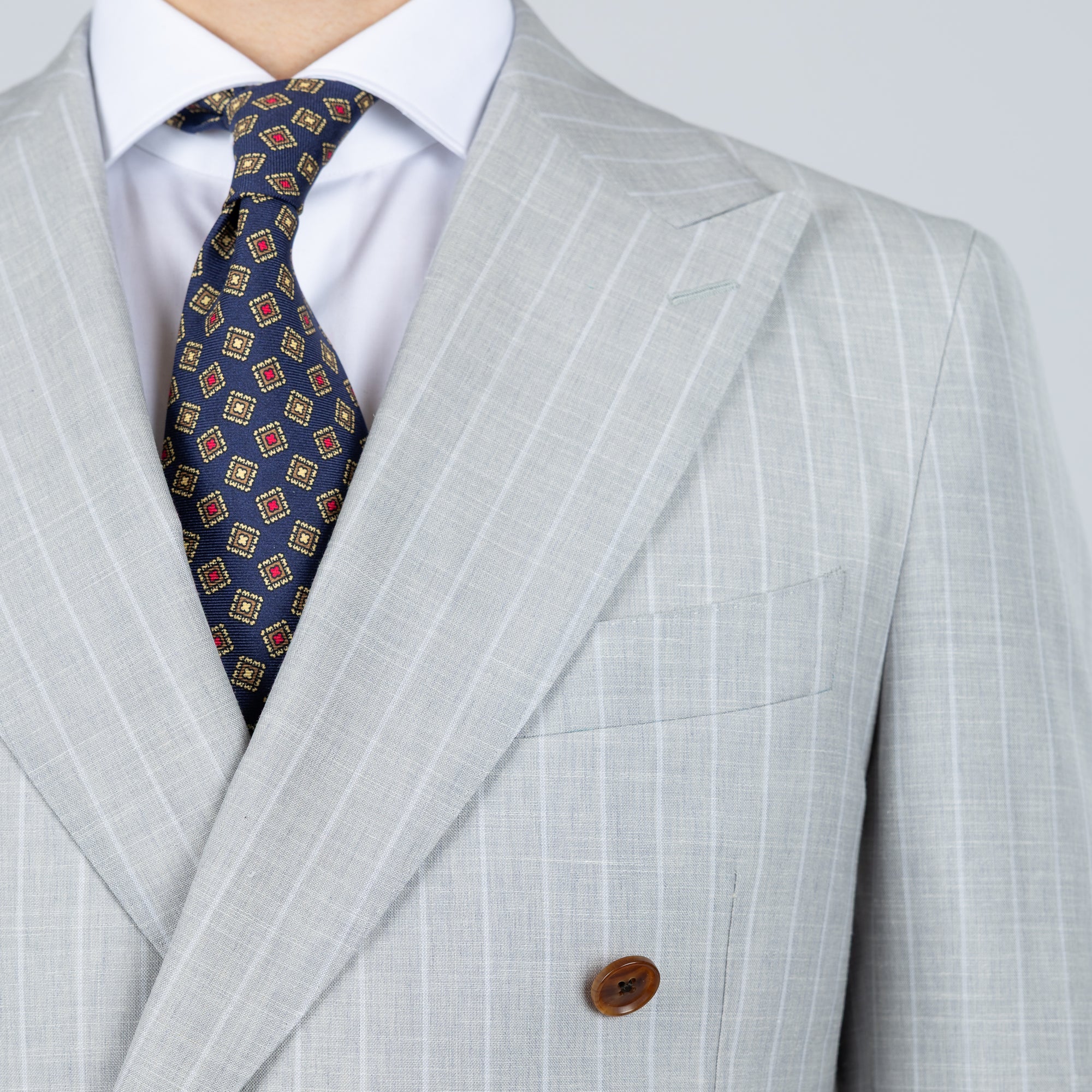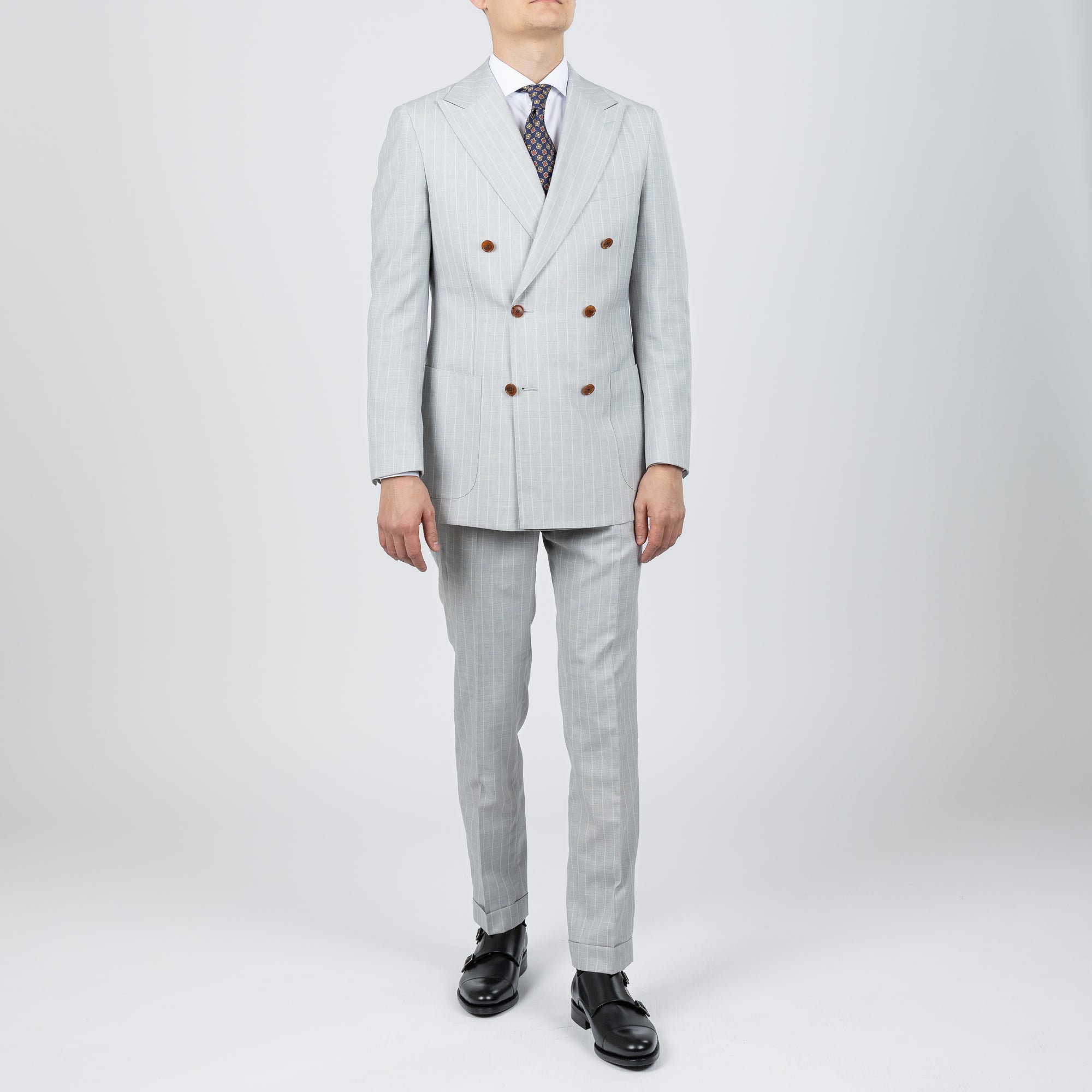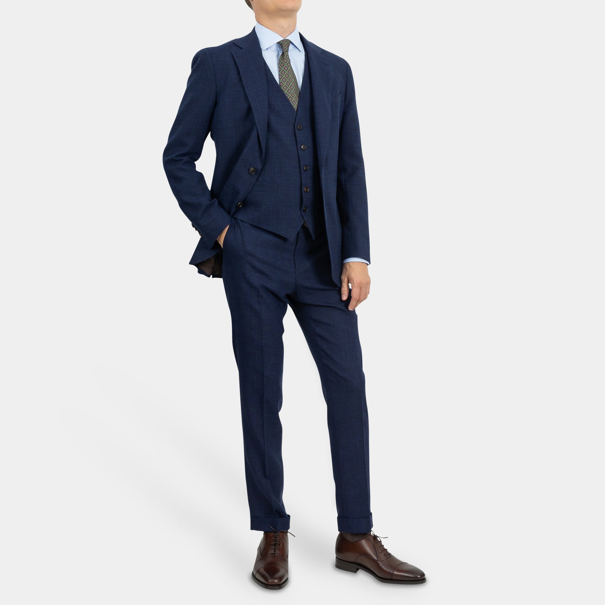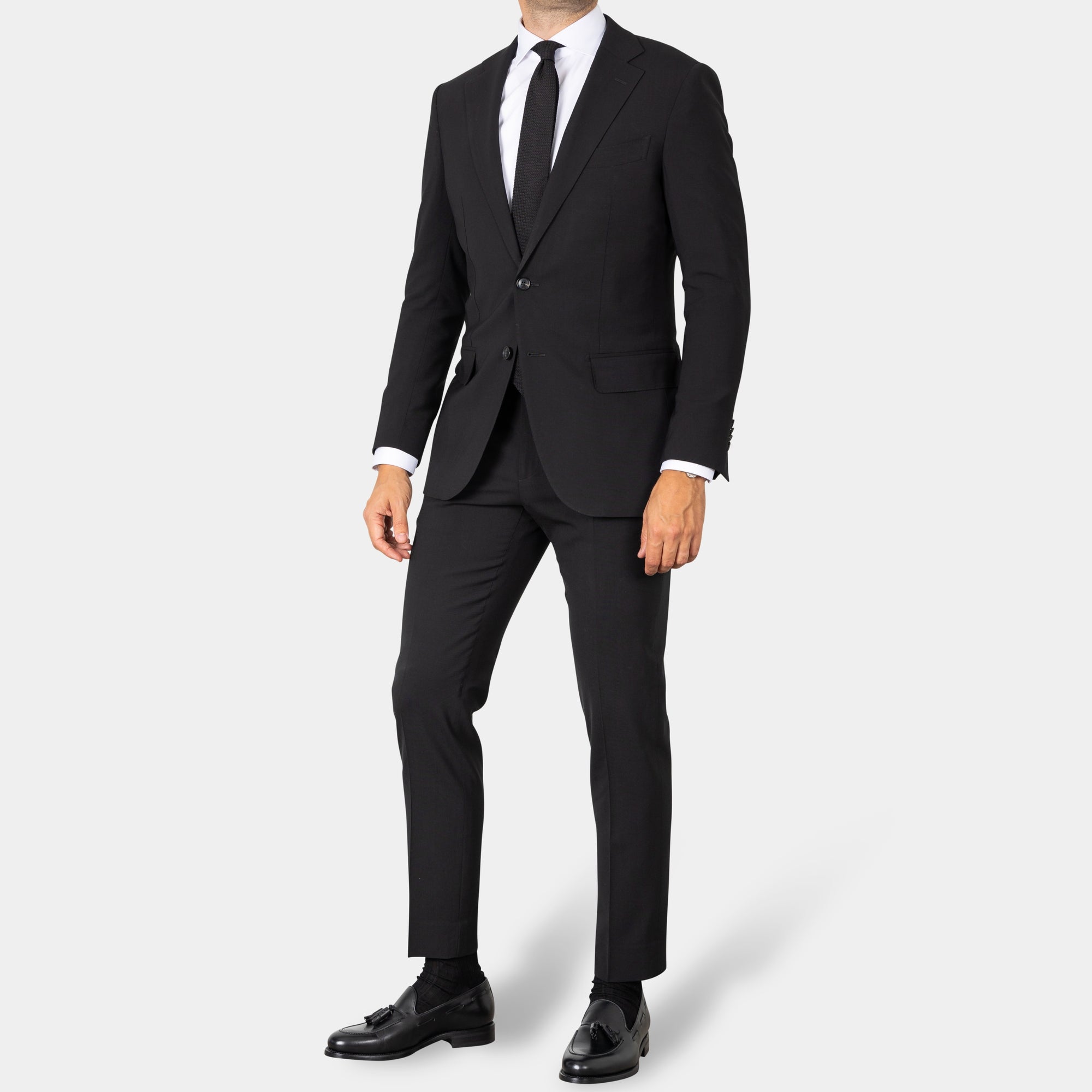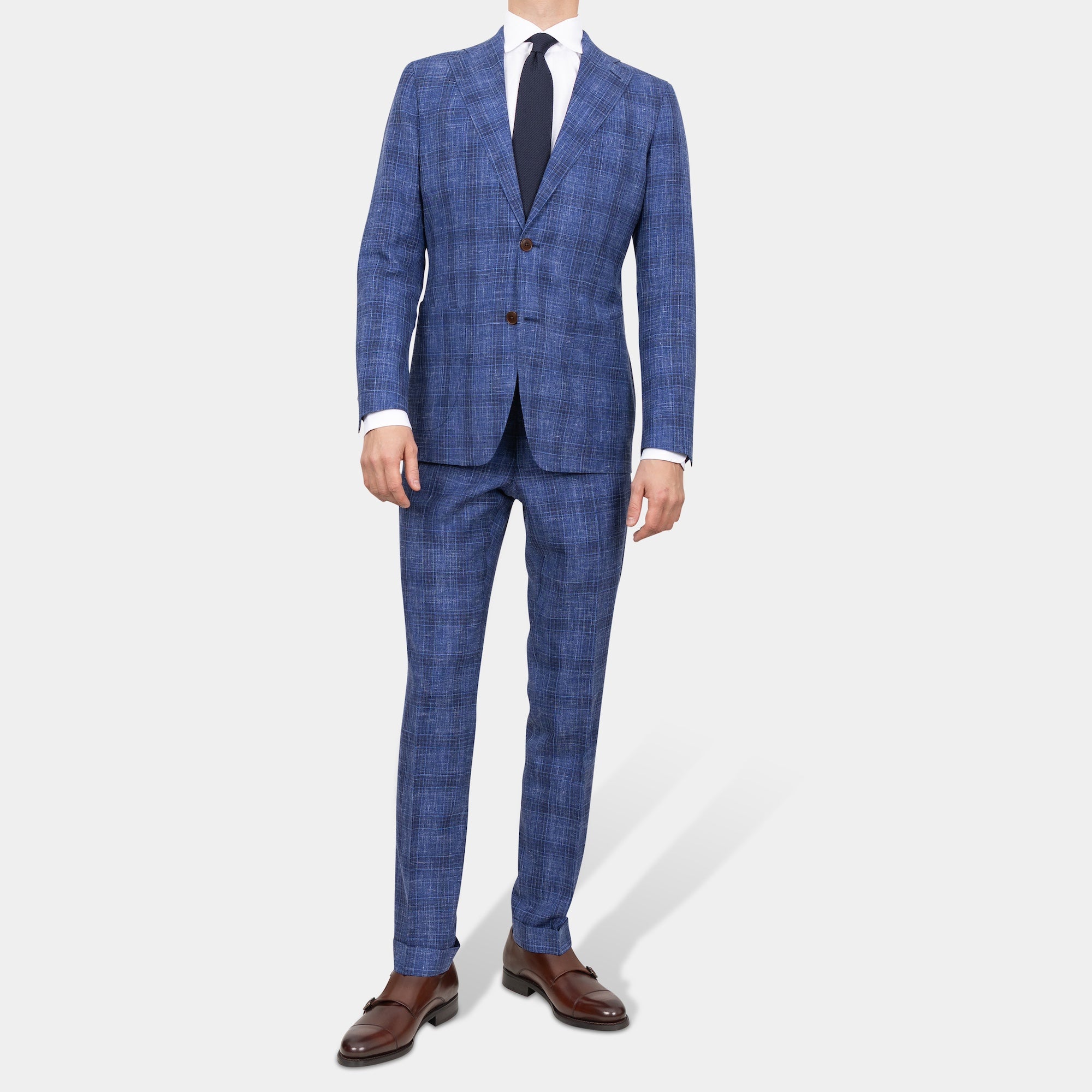 Tilbúnu jakkafötin okkar eru líkt og þau sérsaumuðu framleidd úr bestu mögulegu efnum. Má þar helst nefna Loro Piana, Vitale Barberis Canonico og Guabello sem allar eru staðsettar í Biella á Ítalíu.