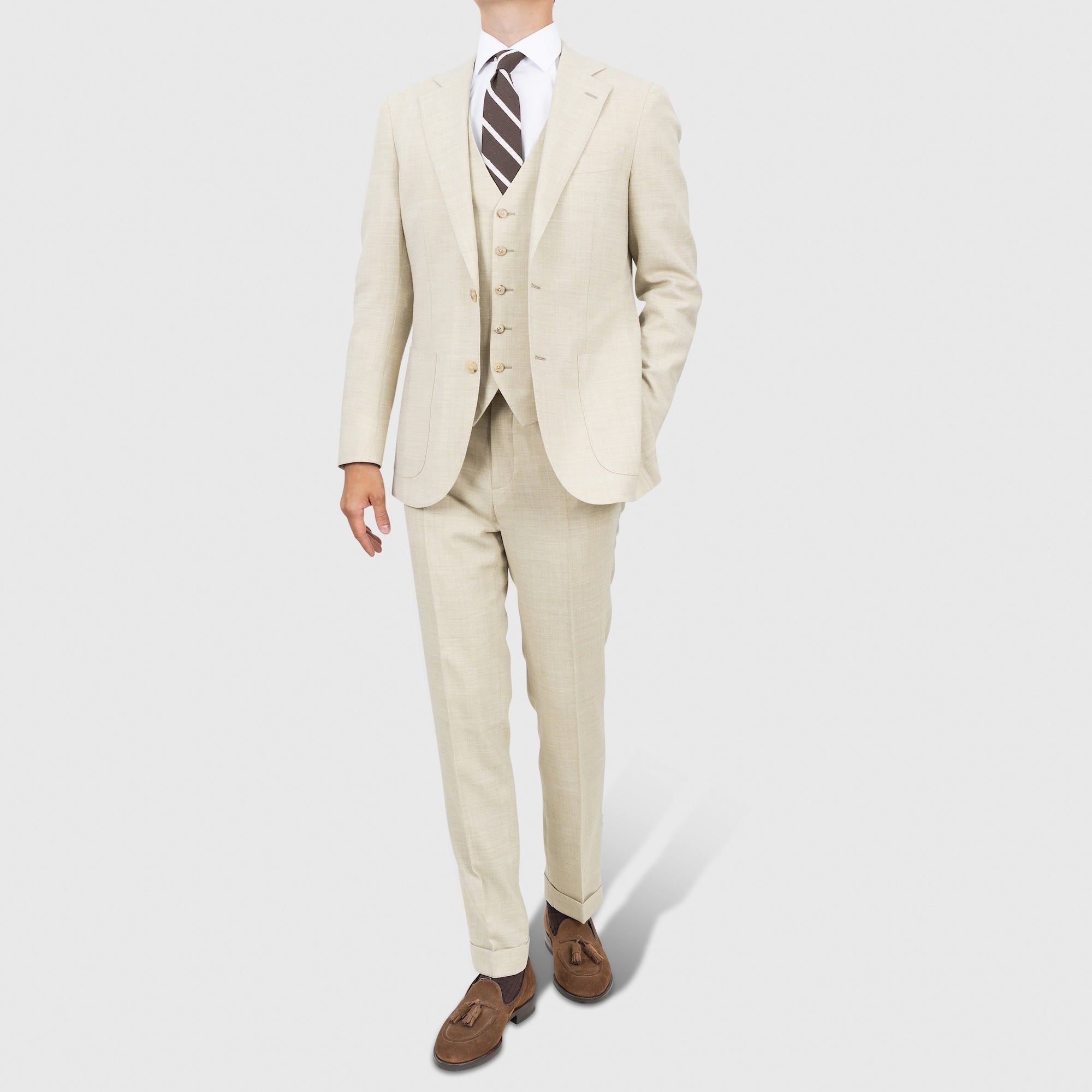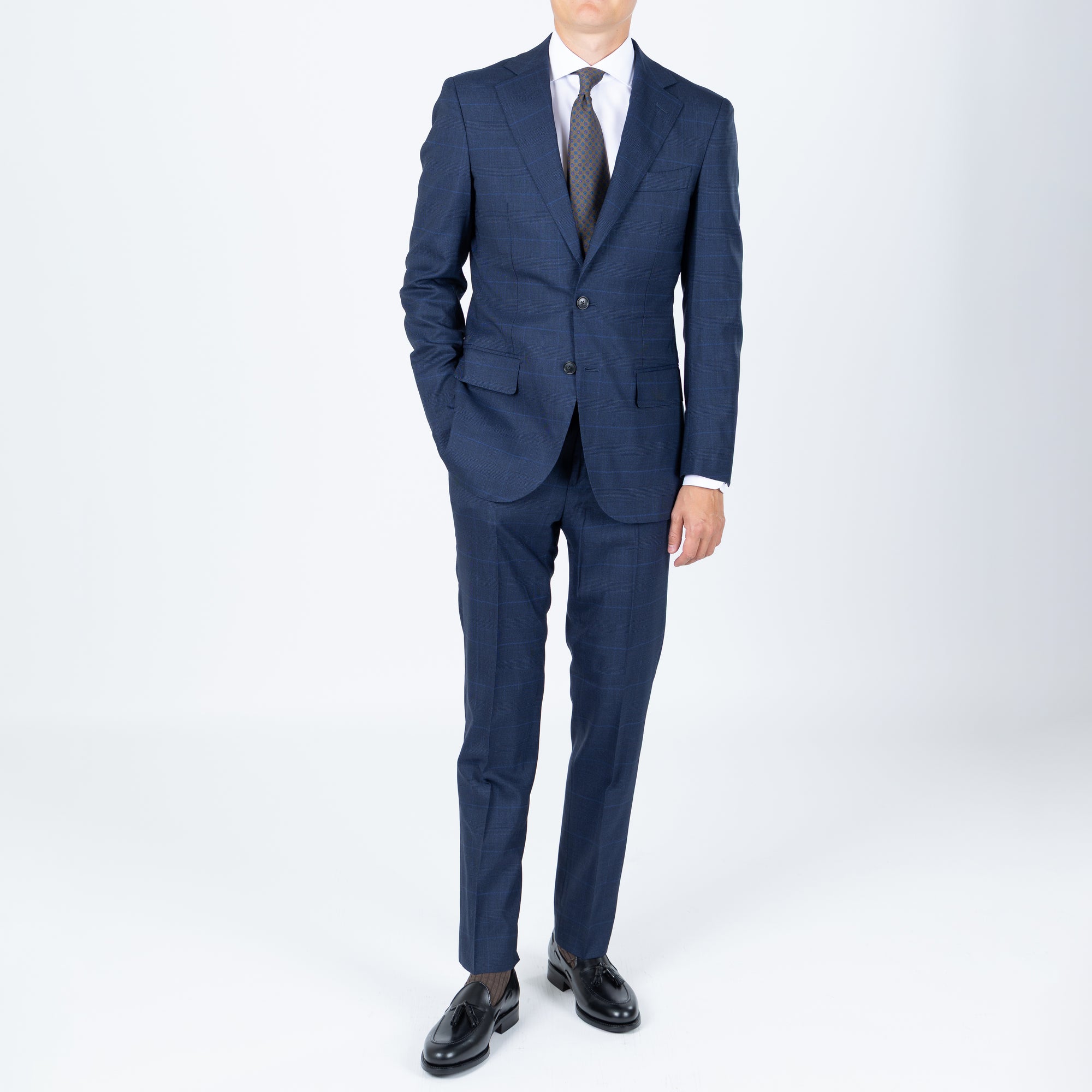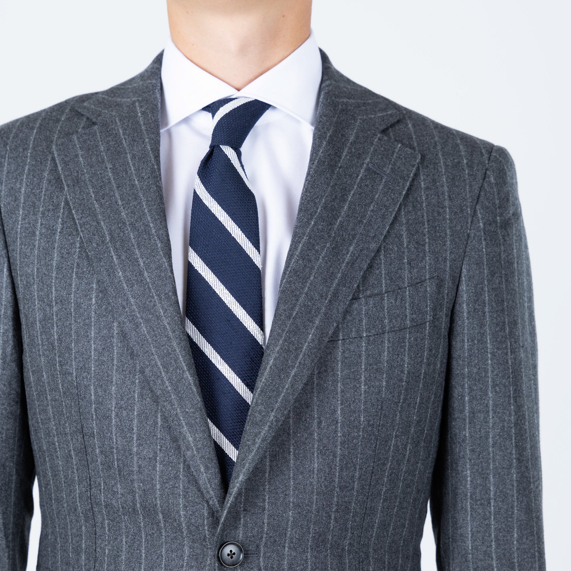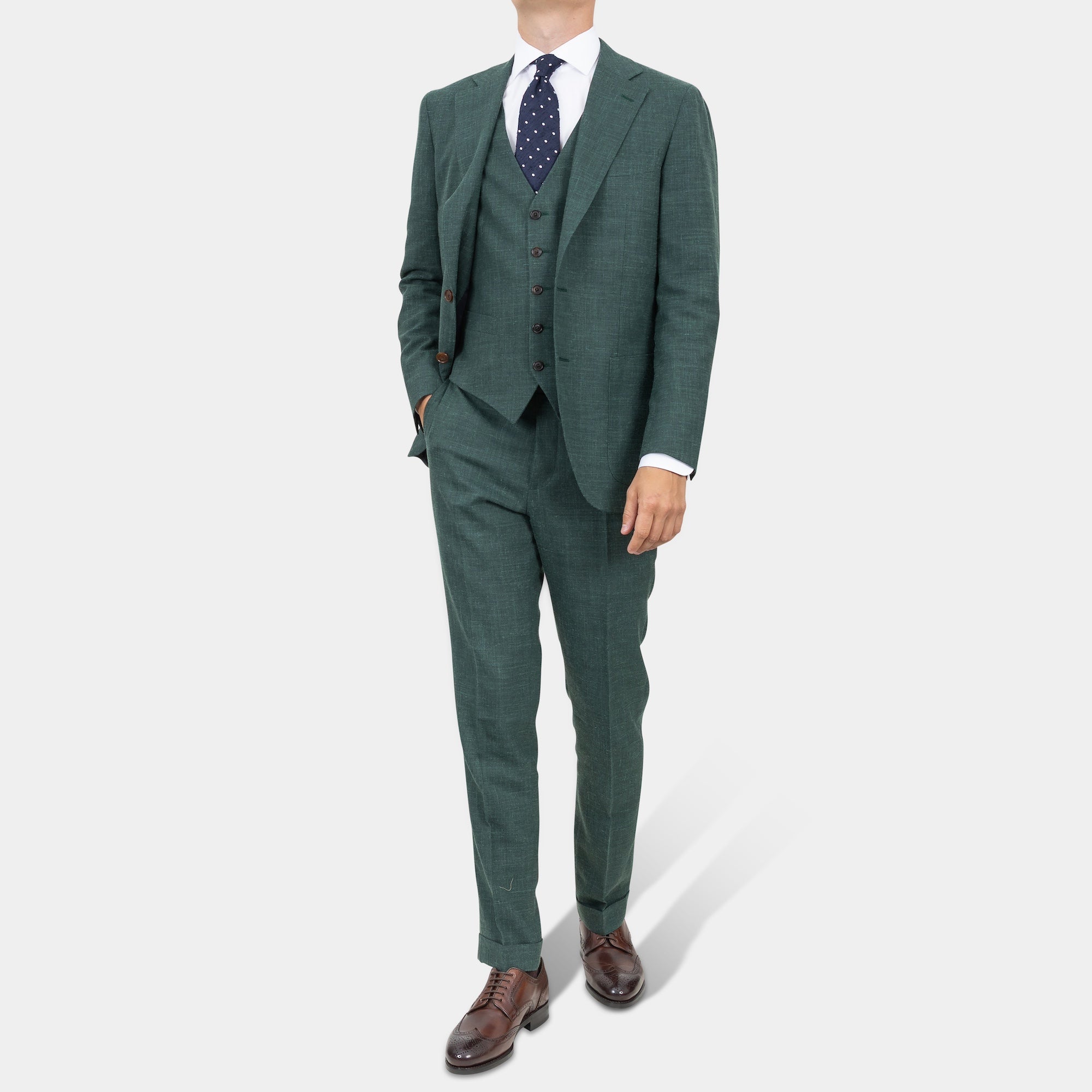 Tilbúnu jakkafötin okkar eru líkt og þau sérsaumuðu framleidd úr bestu mögulegu efnum. Má þar helst nefna Loro Piana, Vitale Barberis Canonico og Guabello sem allar eru staðsettar í Biella á Ítalíu.