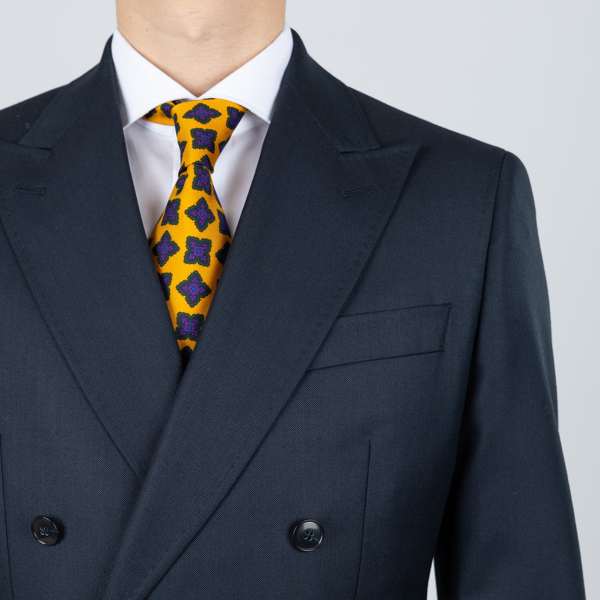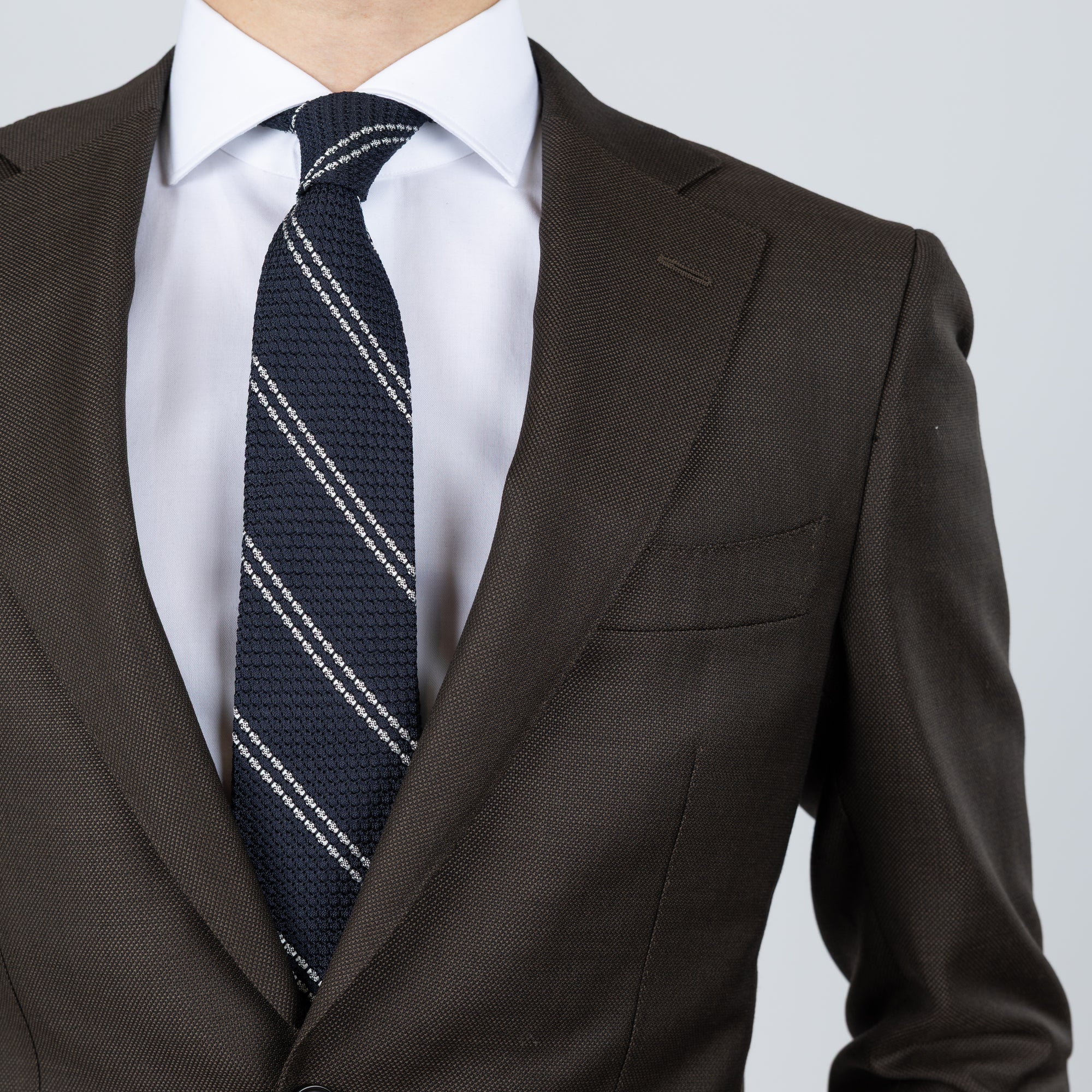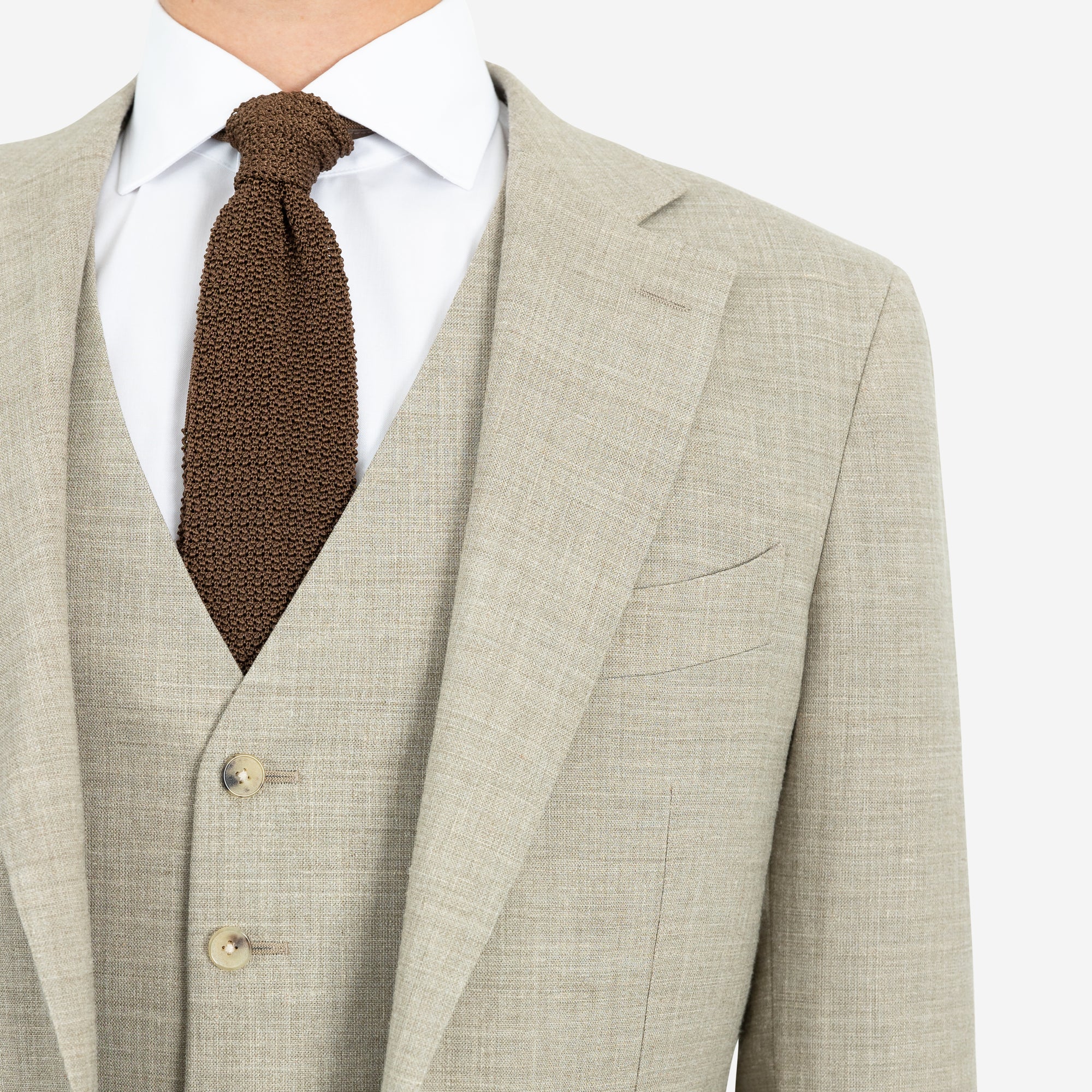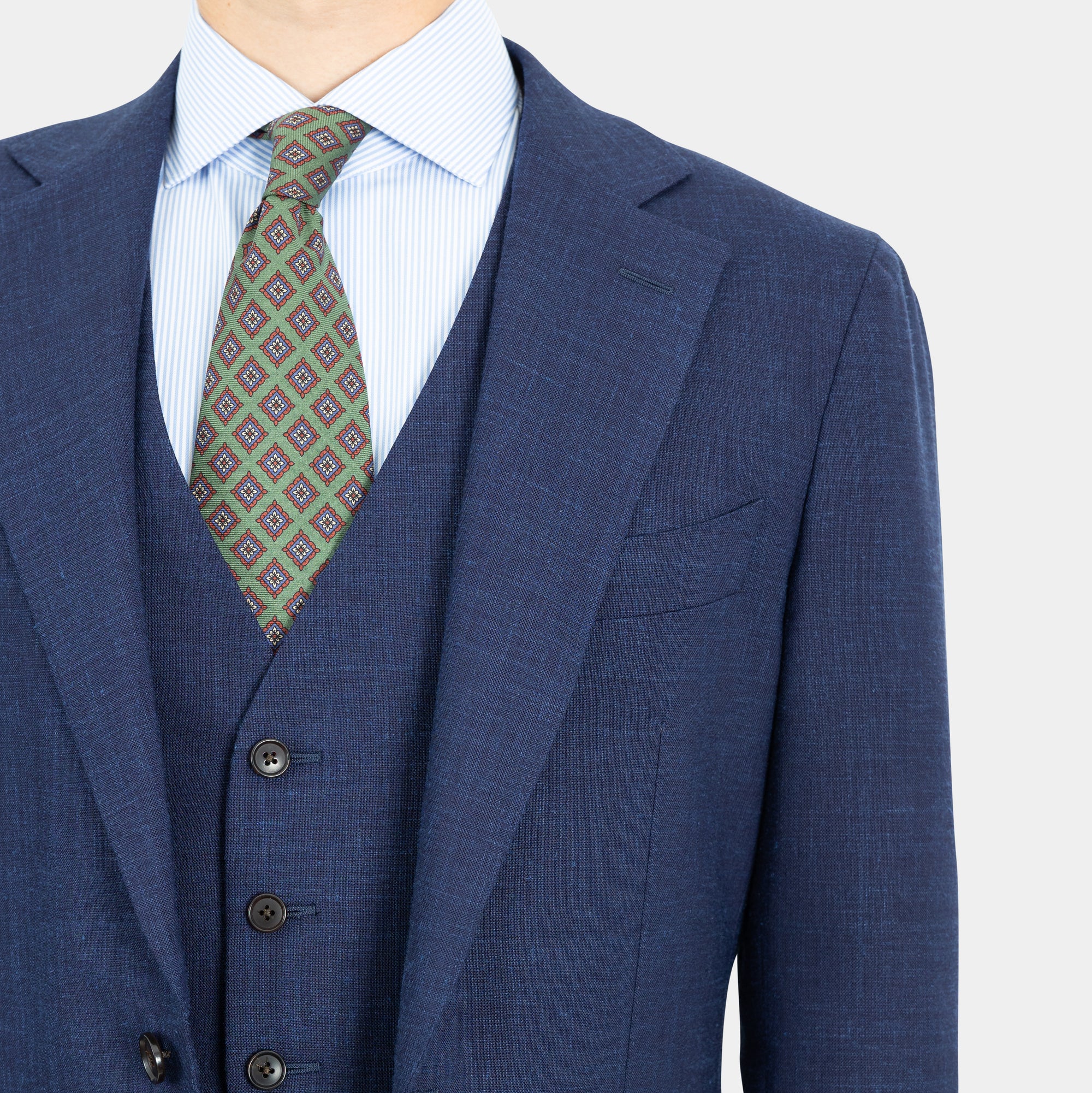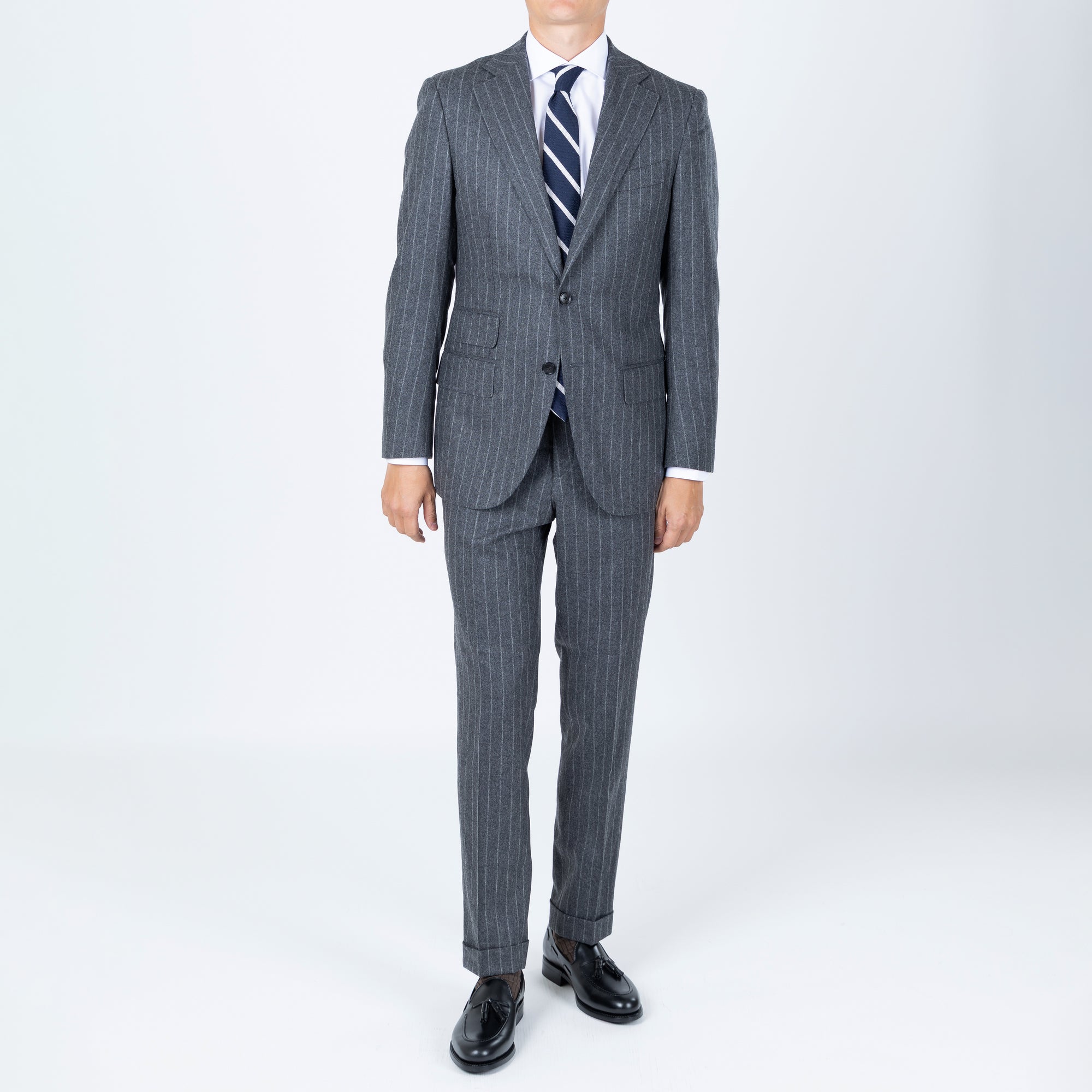 Tilbúnu jakkafötin okkar eru líkt og þau sérsaumuðu framleidd úr bestu mögulegu efnum. Má þar helst nefna Loro Piana, Vitale Barberis Canonico og Guabello sem allar eru staðsettar í Biella á Ítalíu.