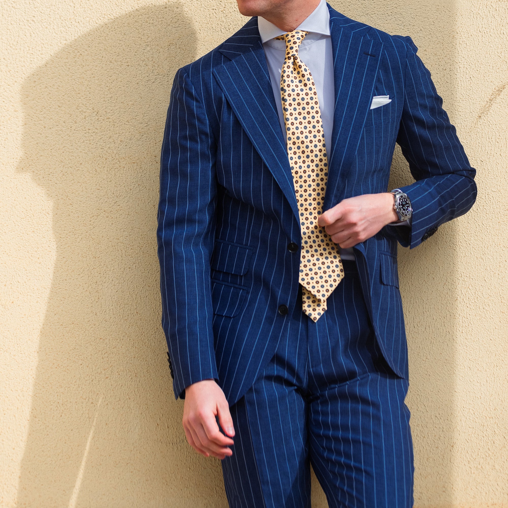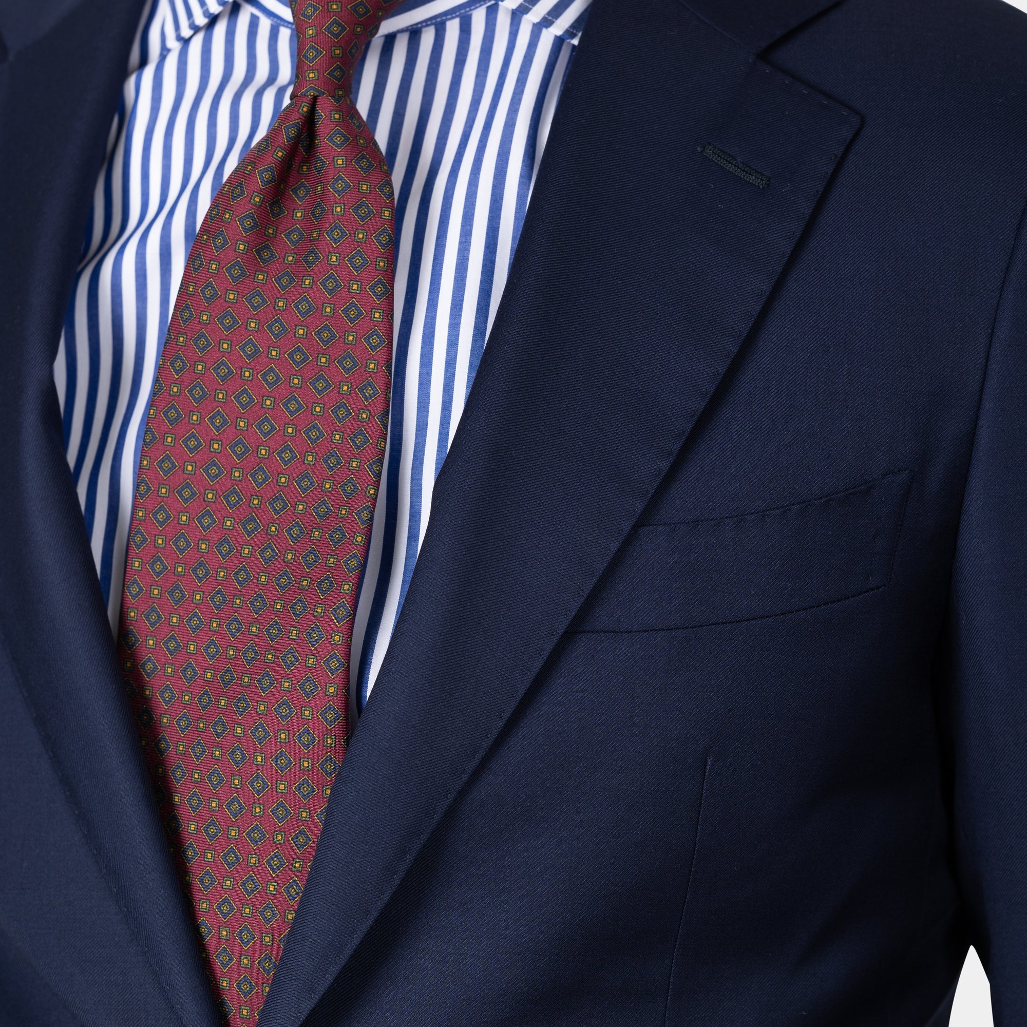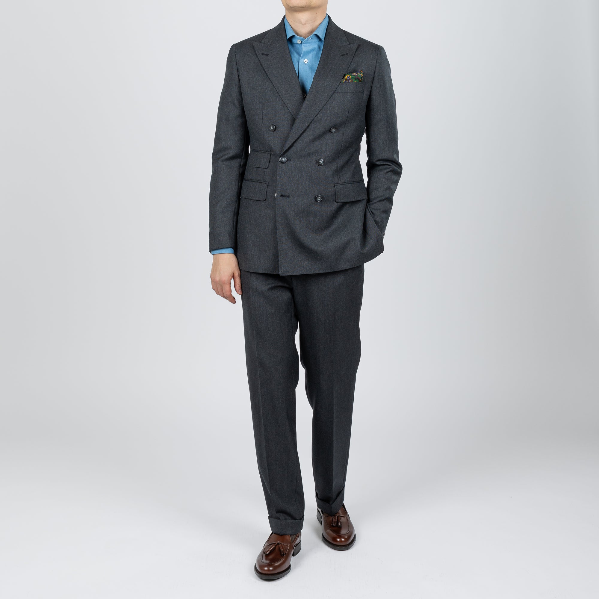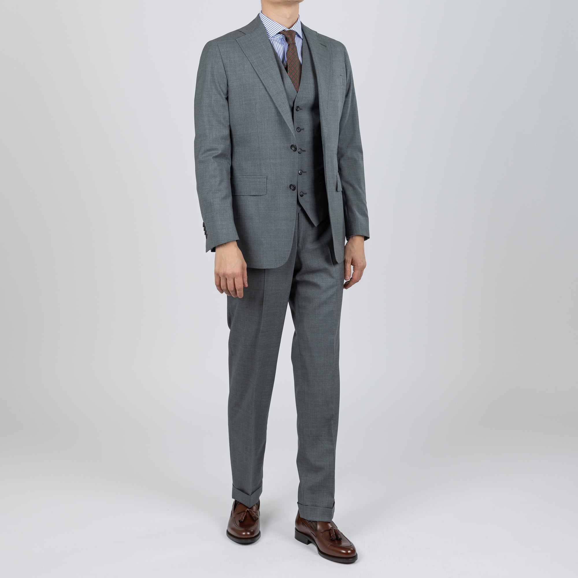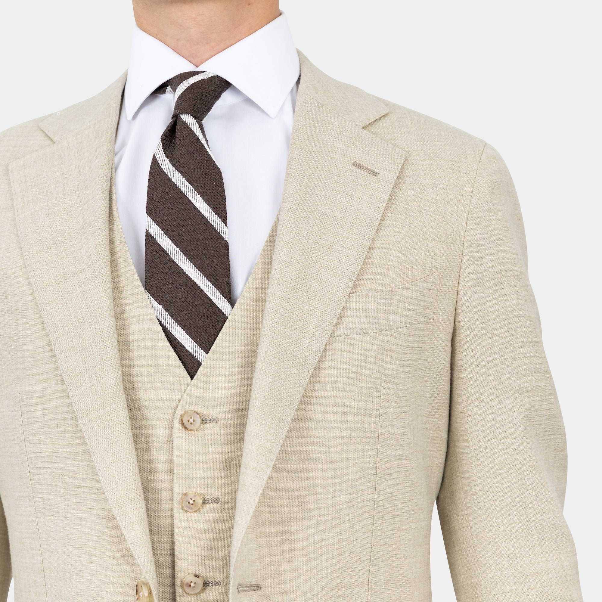 Tilbúnu jakkafötin okkar eru líkt og þau sérsaumuðu framleidd úr bestu mögulegu efnum. Má þar helst nefna Loro Piana, Vitale Barberis Canonico og Guabello sem allar eru staðsettar í Biella á Ítalíu.