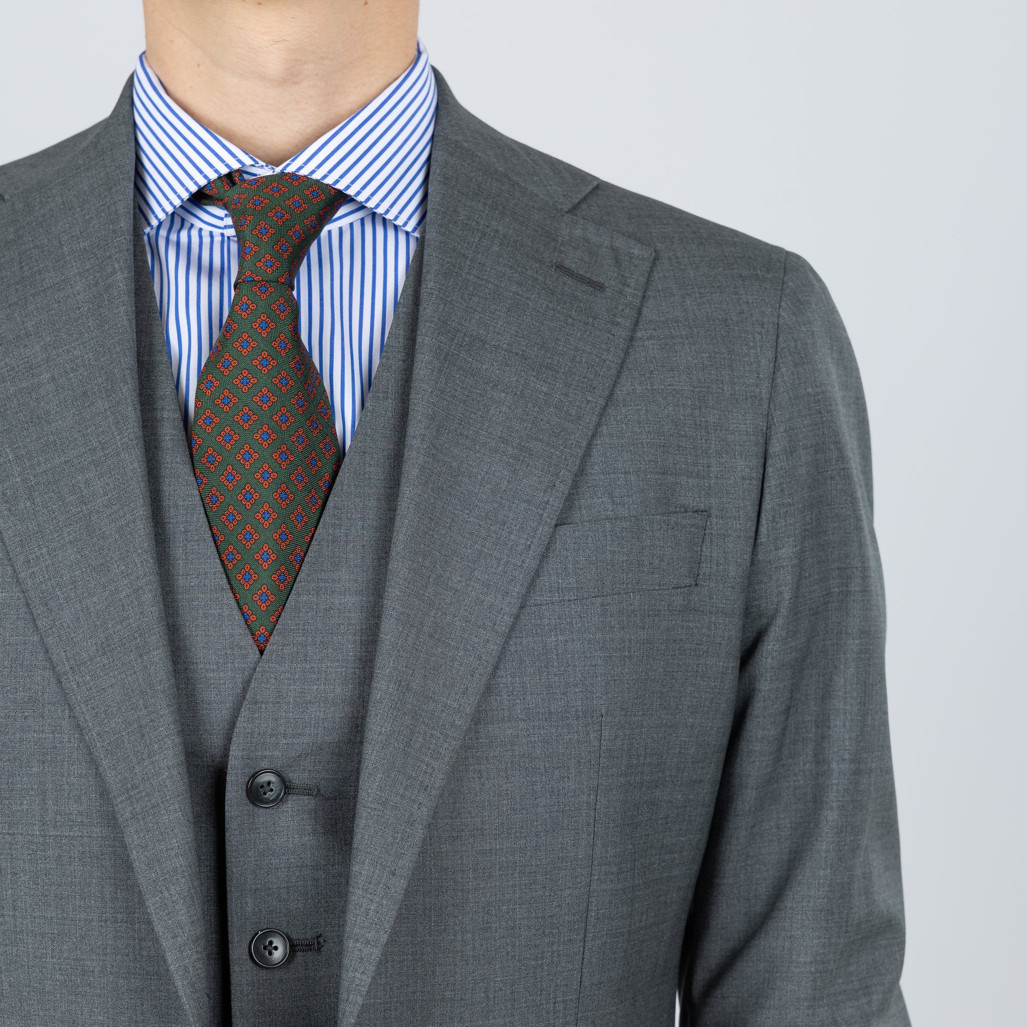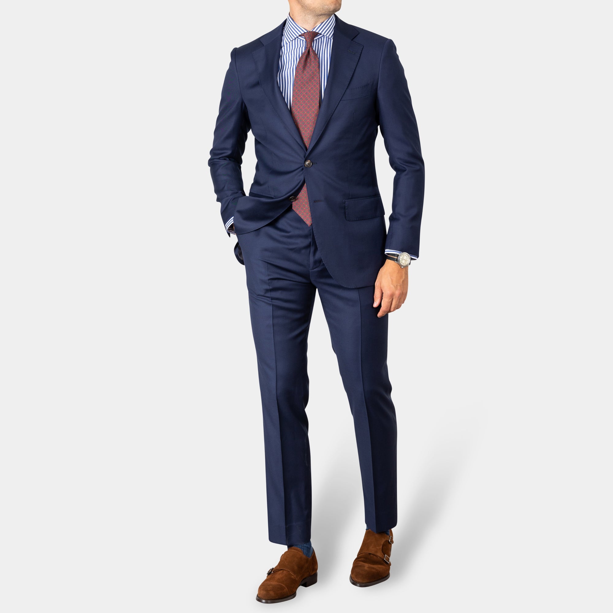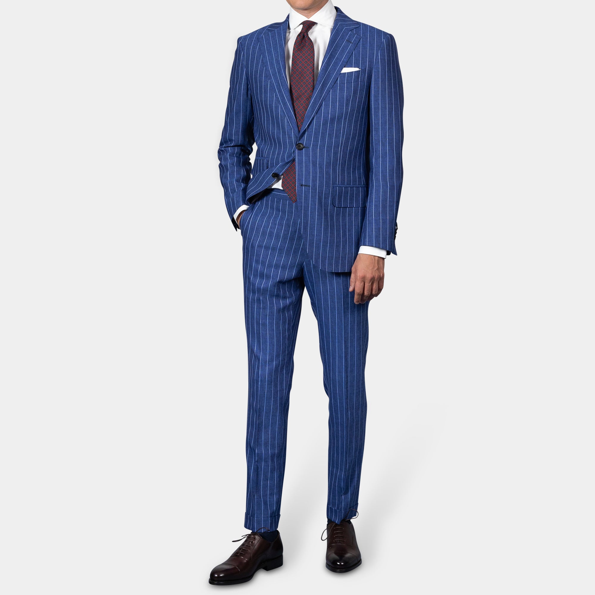 Sniðið á jakkafötunum okkar er hinsvegar það sem gerir þau einstök. Í gegnum árin höfum við tekið mál af þúsundum einstaklinga. Þau gögn notuðum við til að þróa jakkafatasnið sem hentar íslenskri líkamsbyggingu einstaklega vel. Við bjóðum auðvitað upp á að gera breytingar á fötunum ef til þarf og getum gert þær samdægurs ef tíminn er naumur.